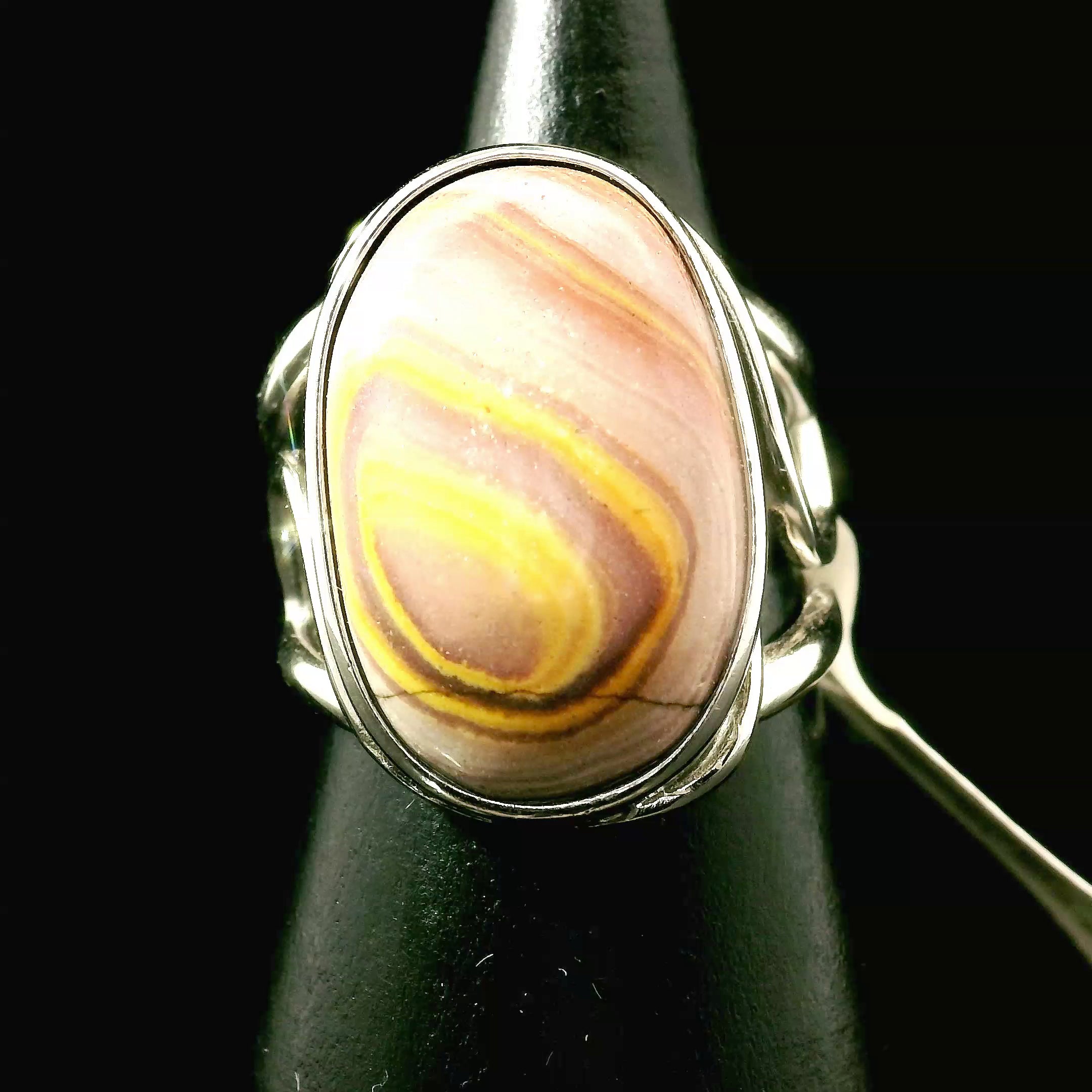 Hickory Ryolite Cuff Ring 925 Silver Adjustable Ring for Creativity, Motivation and Strength