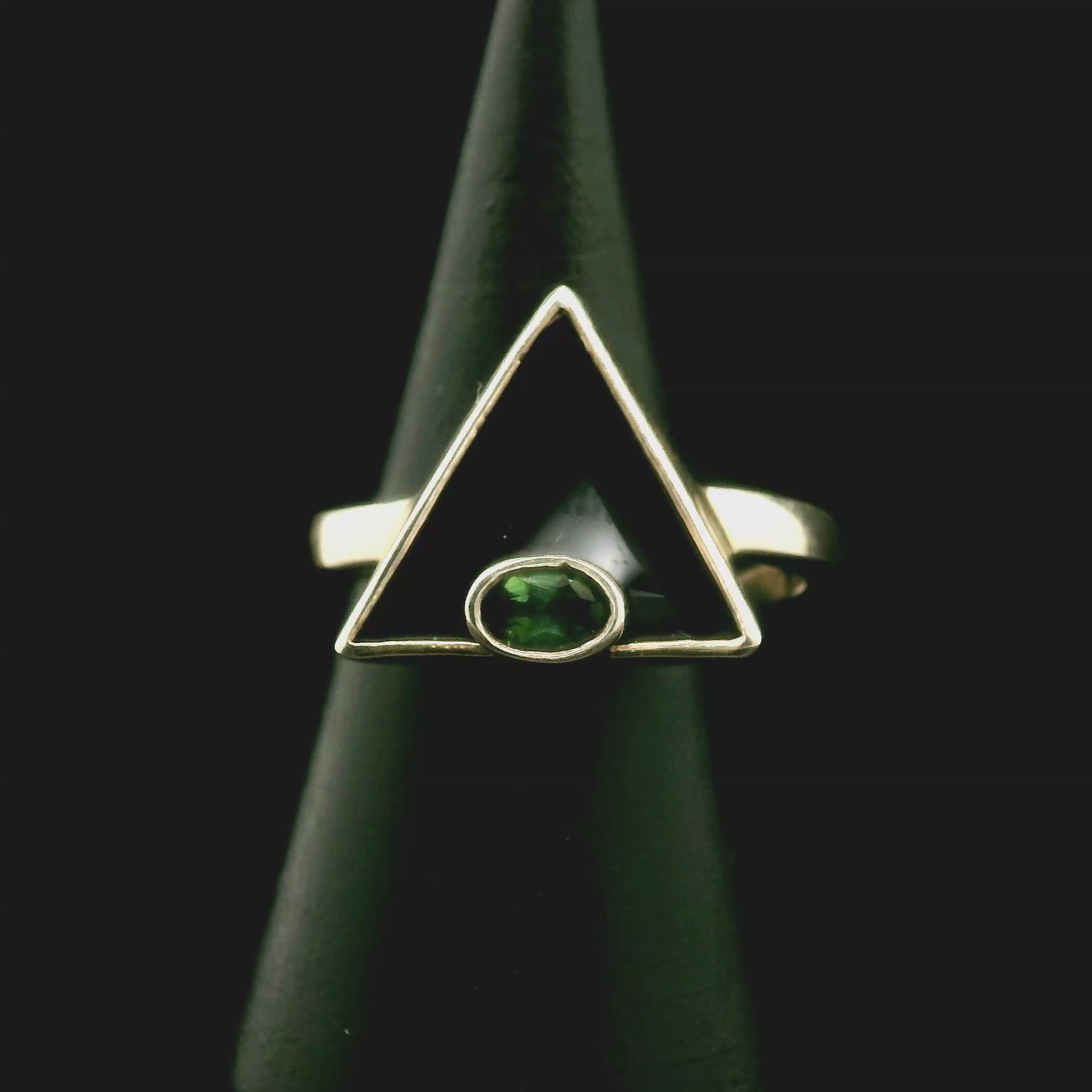 Black Spinel and Tourmaline Ring .925 Silver for Empowerment, Grounding and Protection