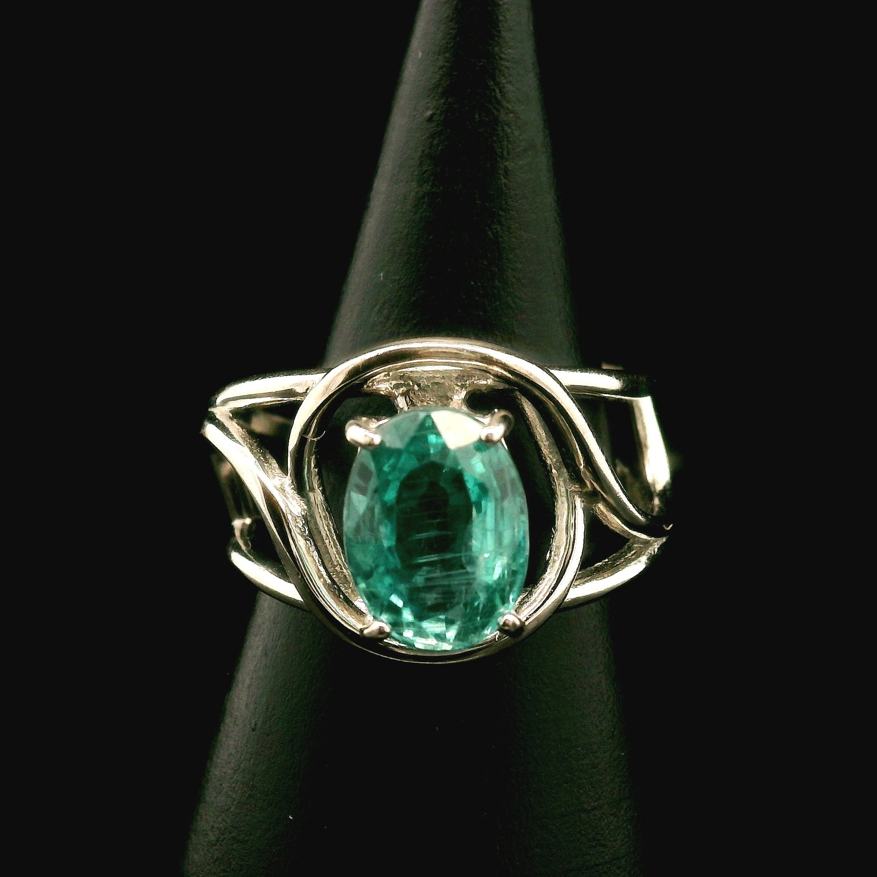 Stunning, high quality gemmy Blue Apatite Cuff Ring in rhodium plated, .925 Sterling Silver. Adjustable ring fits sizes 4-11.
