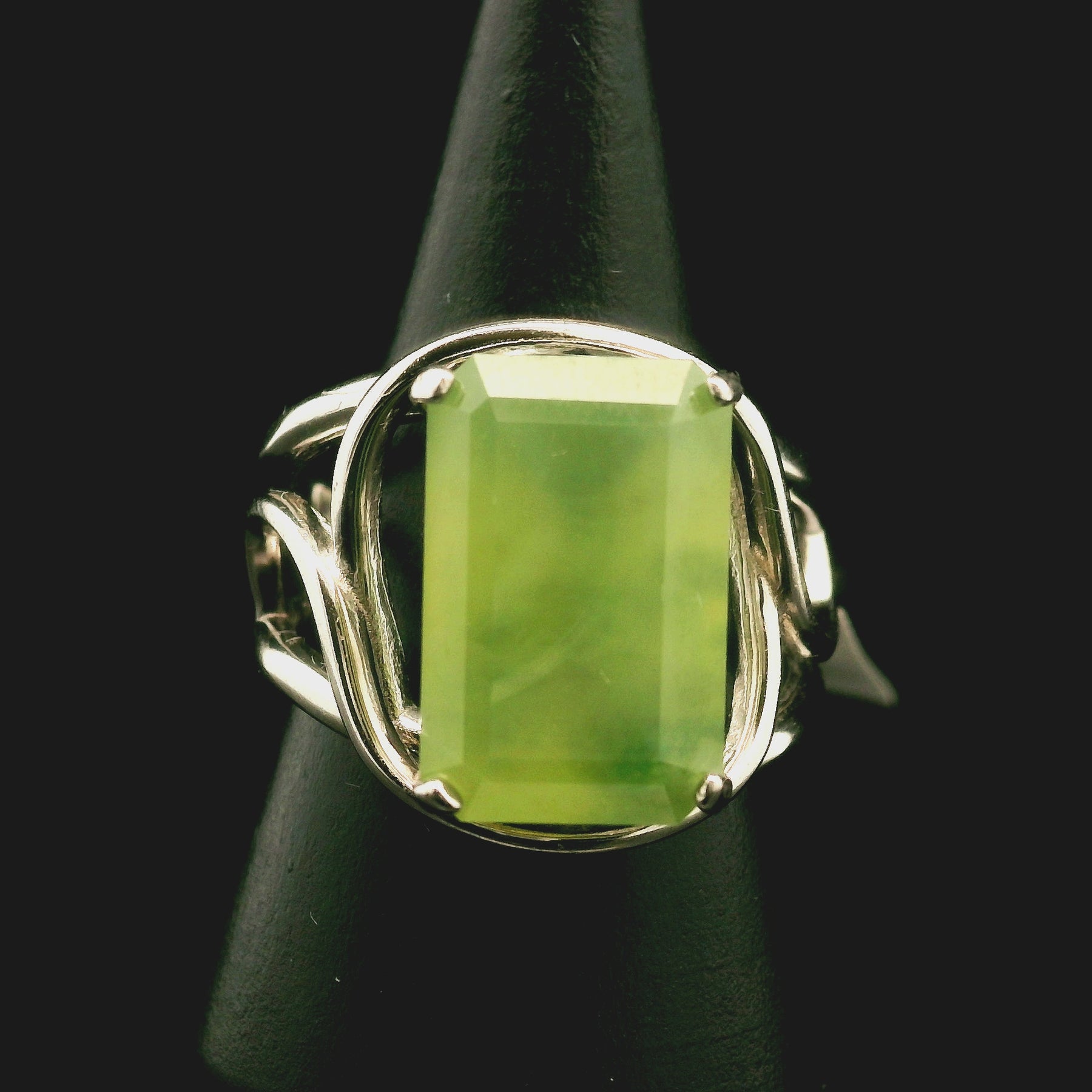 Stunning high quality Californite Vesuvianite Cuff Ring in rhodium plated, .925 Sterling Silver. Adjustable ring fits sizes 4-11.