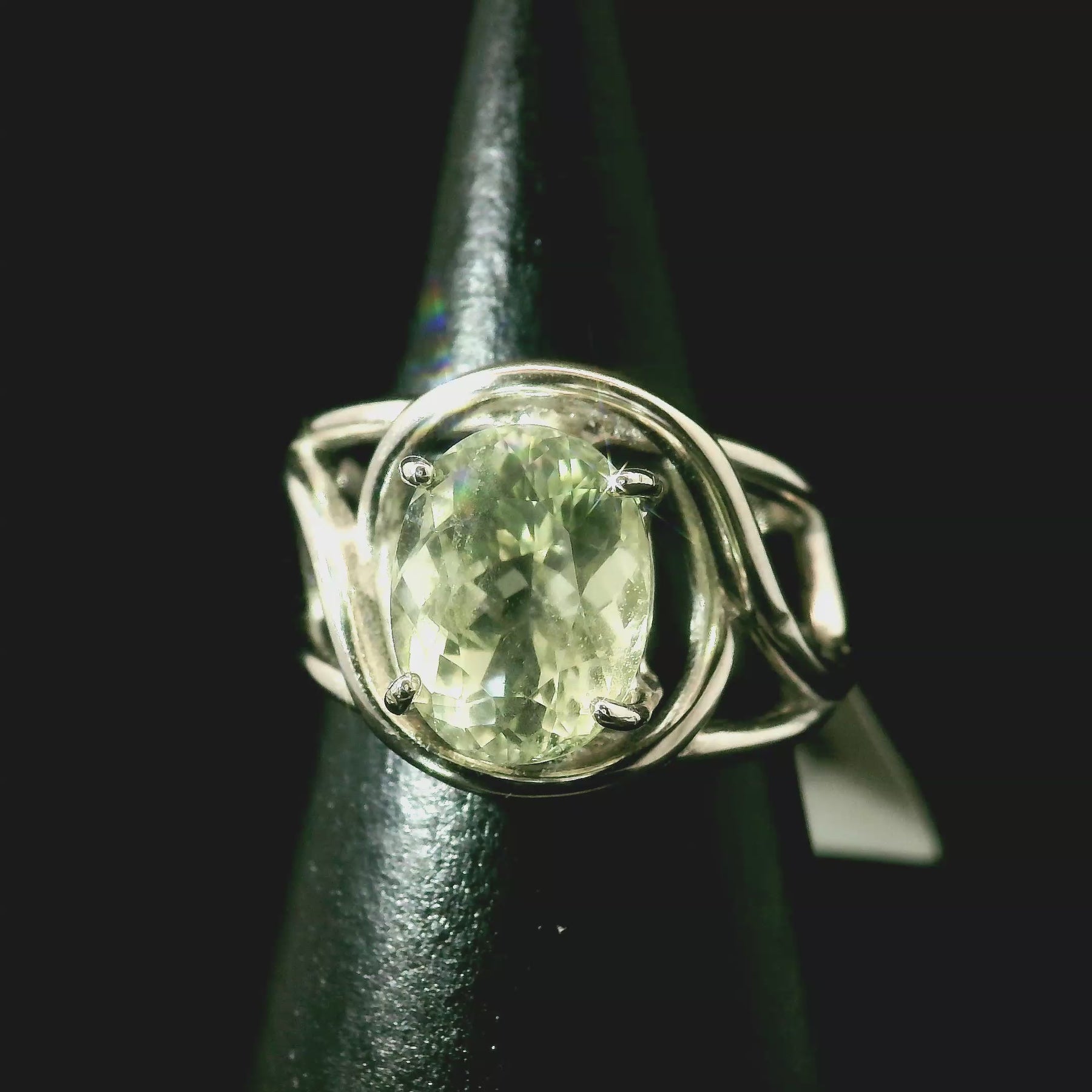Herderite Cuff Ring 925 Silver for Intuition, Focus and Awakening