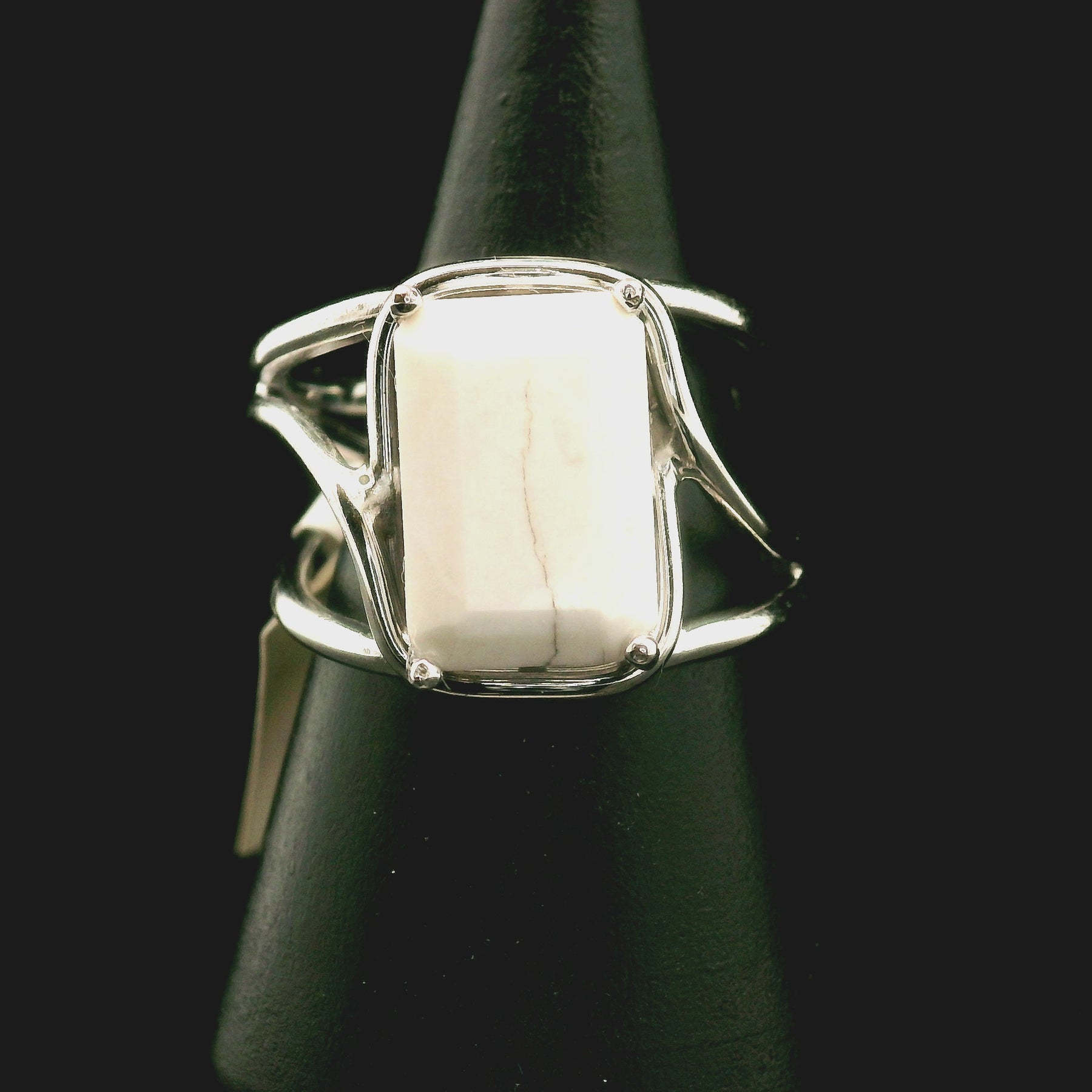 Howlite Faceted Cuff Ring .925 Silver for Awareness, Calmness and Wisdom