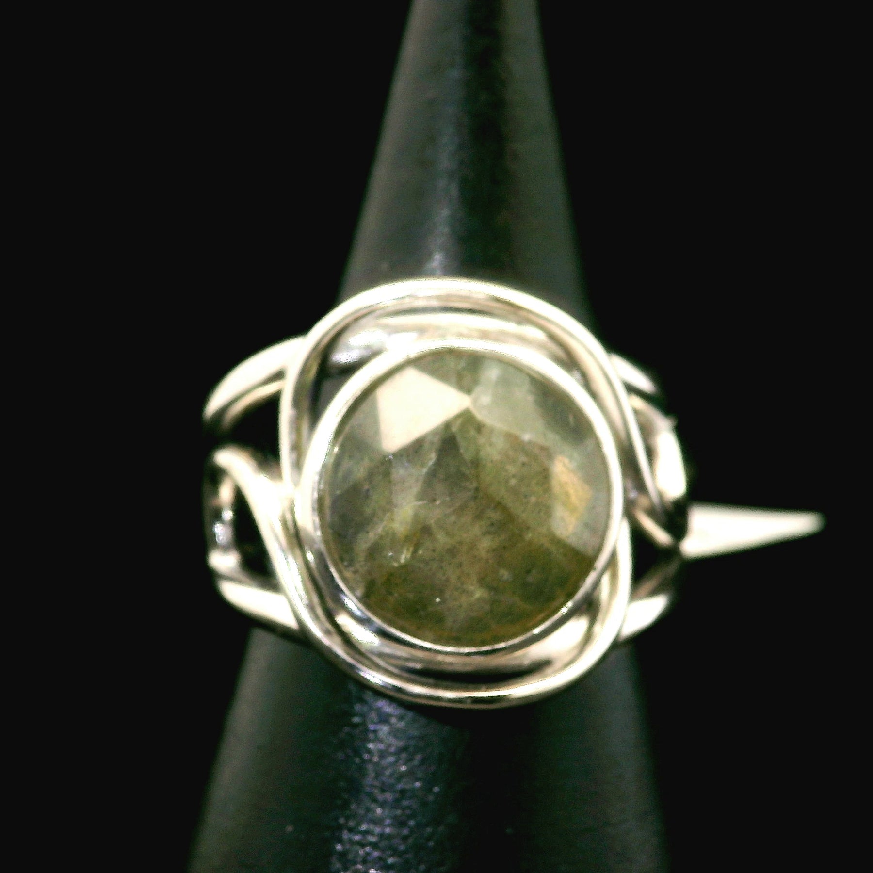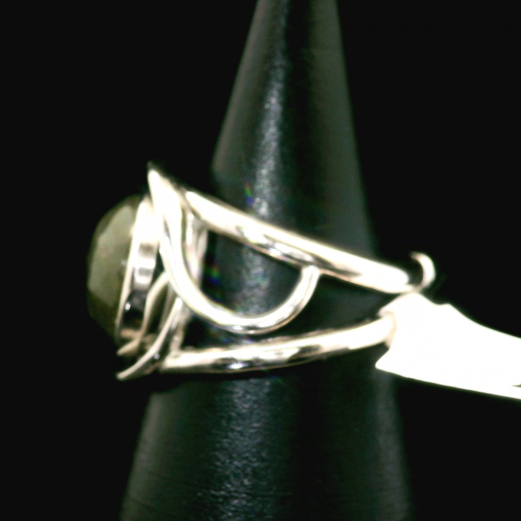 Labradorite Rose Cut Cuff Ring .925 Silver for Protection and Guidance