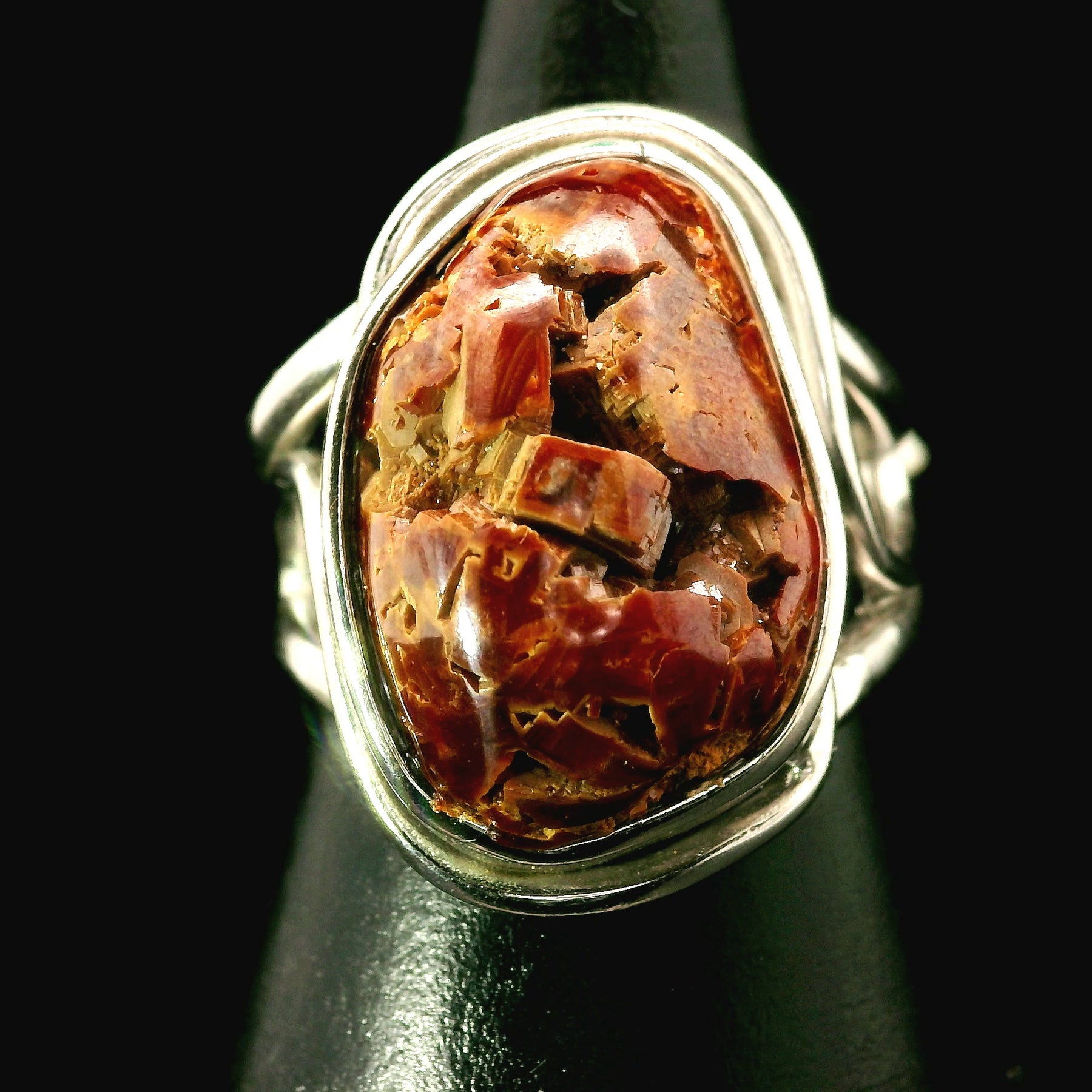 This beautiful, high quality, natural untreated Vanadinite was hand picked with intention just for you by Rick and Jamie and set in our best selling, rhodium plated, .925 Sterling Silver adjustable setting. This will be a beautiful heirloom in your collection to enjoy for generations!