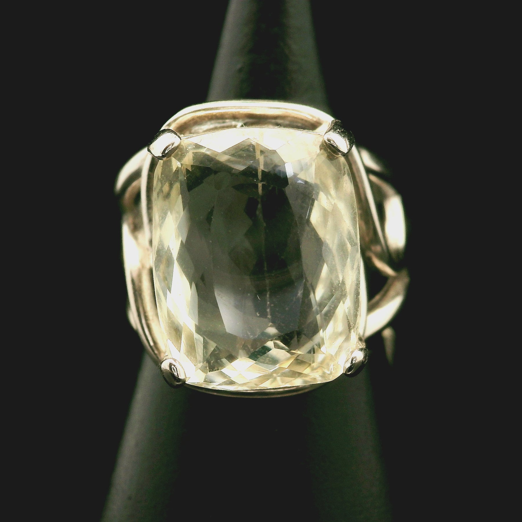 Absolutely enchanting Rutilated Triphane Cuff Ring in rhodium plated, .925 Sterling Silver. Adjustable ring fits sizes 4-11.