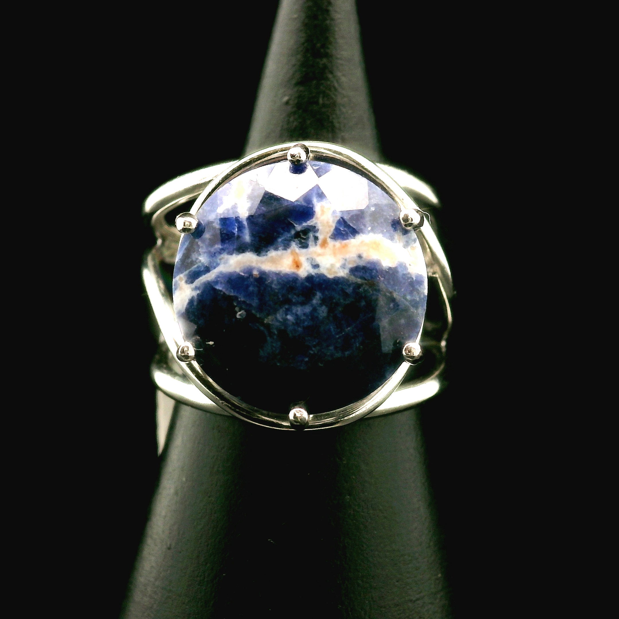 Sodalite Adjustable Cuff Ring .925 Silver for Dream Recall and Relaxation