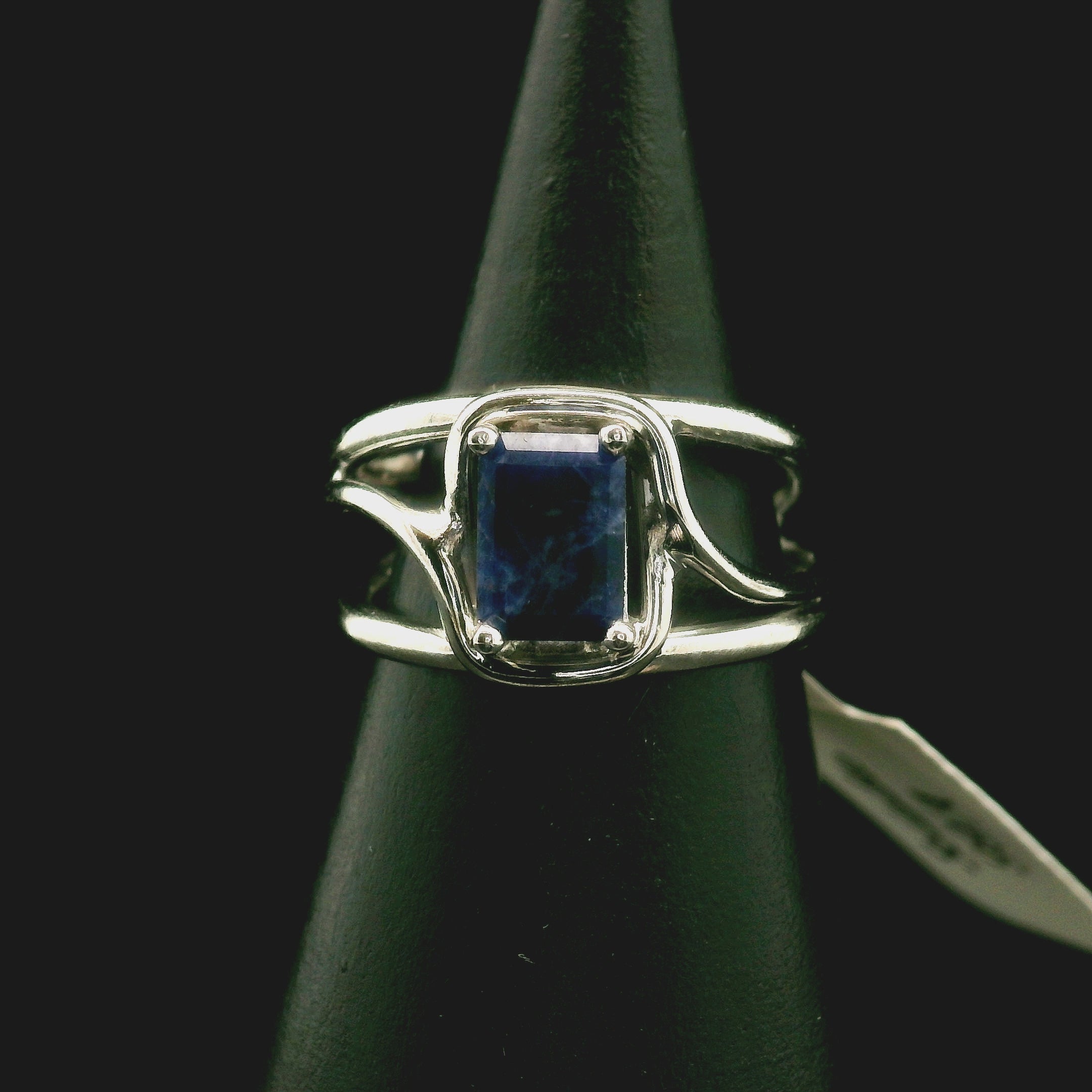 Sodalite Cuff Ring .925 Silver for Dream Recall and Relaxation