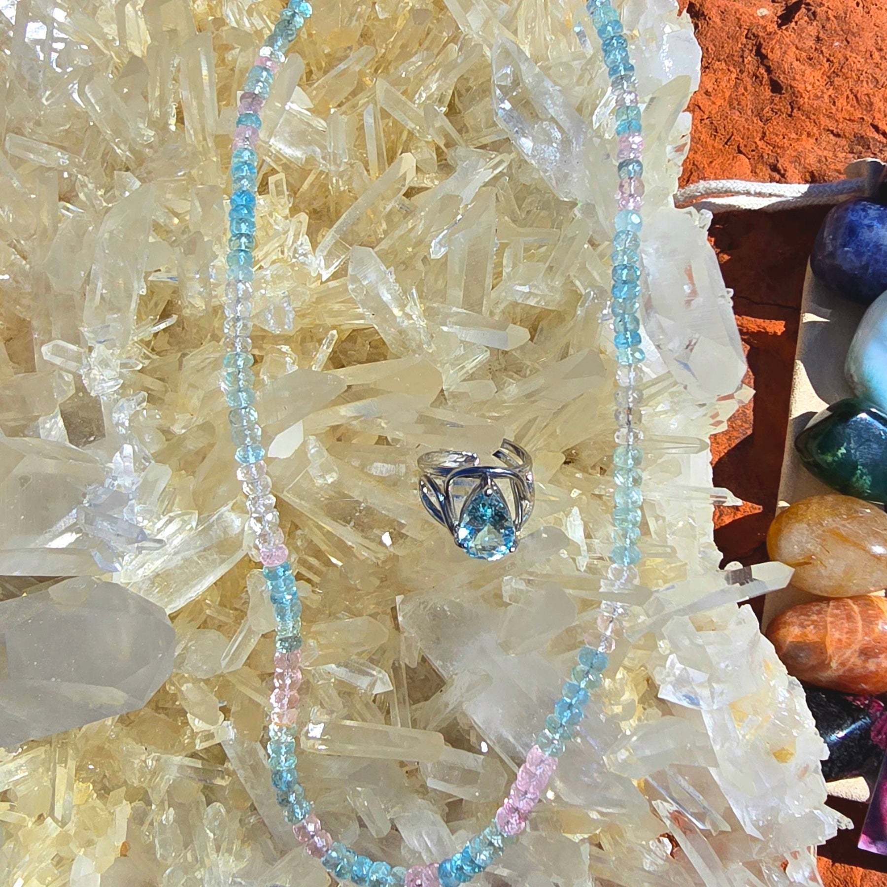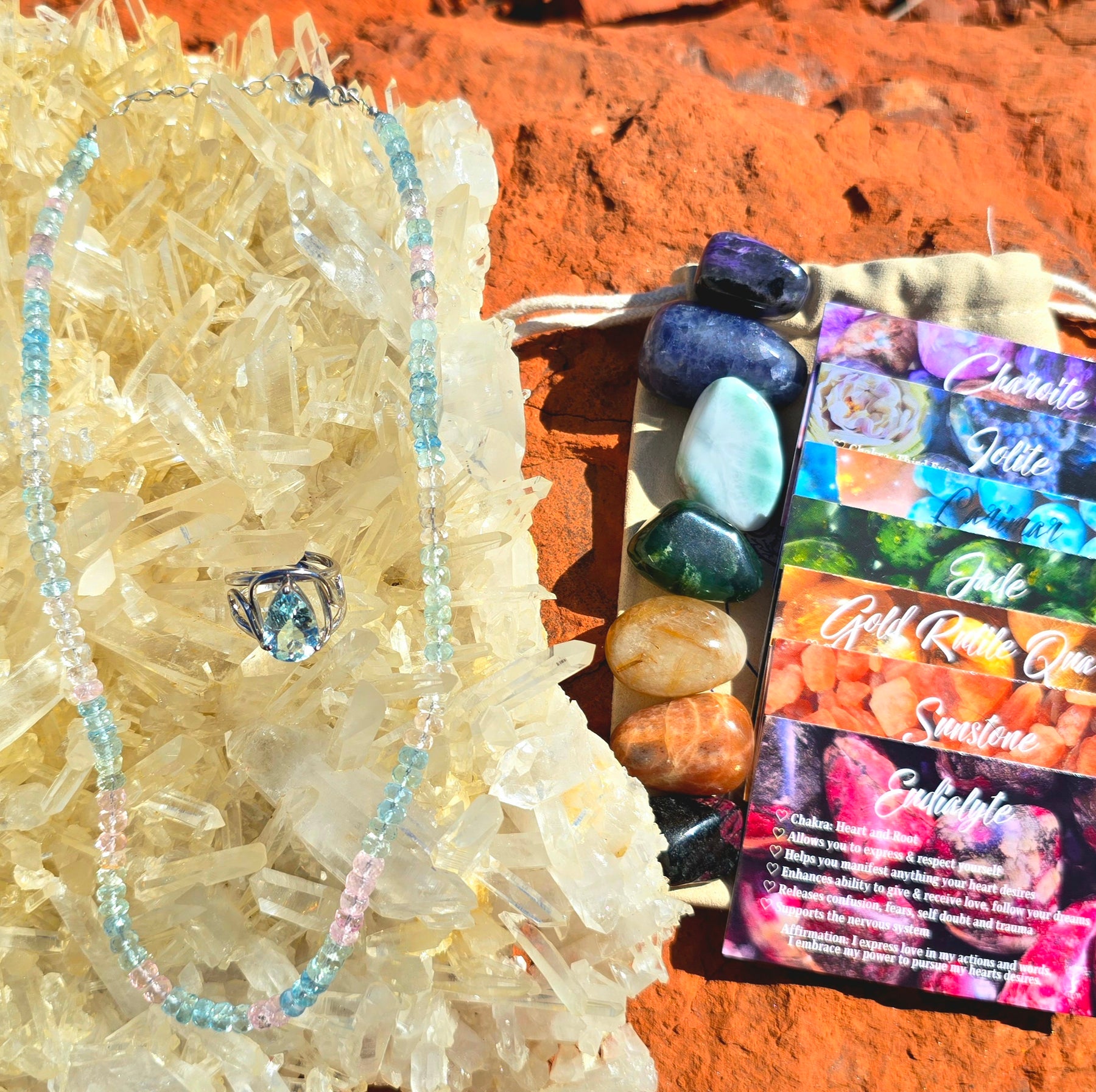 Collector's Charm Holiday Set | Aquamarine & Morganite Fine Jewelry Collection | Ring Necklace + Luxury 7-Chakra Stone Set