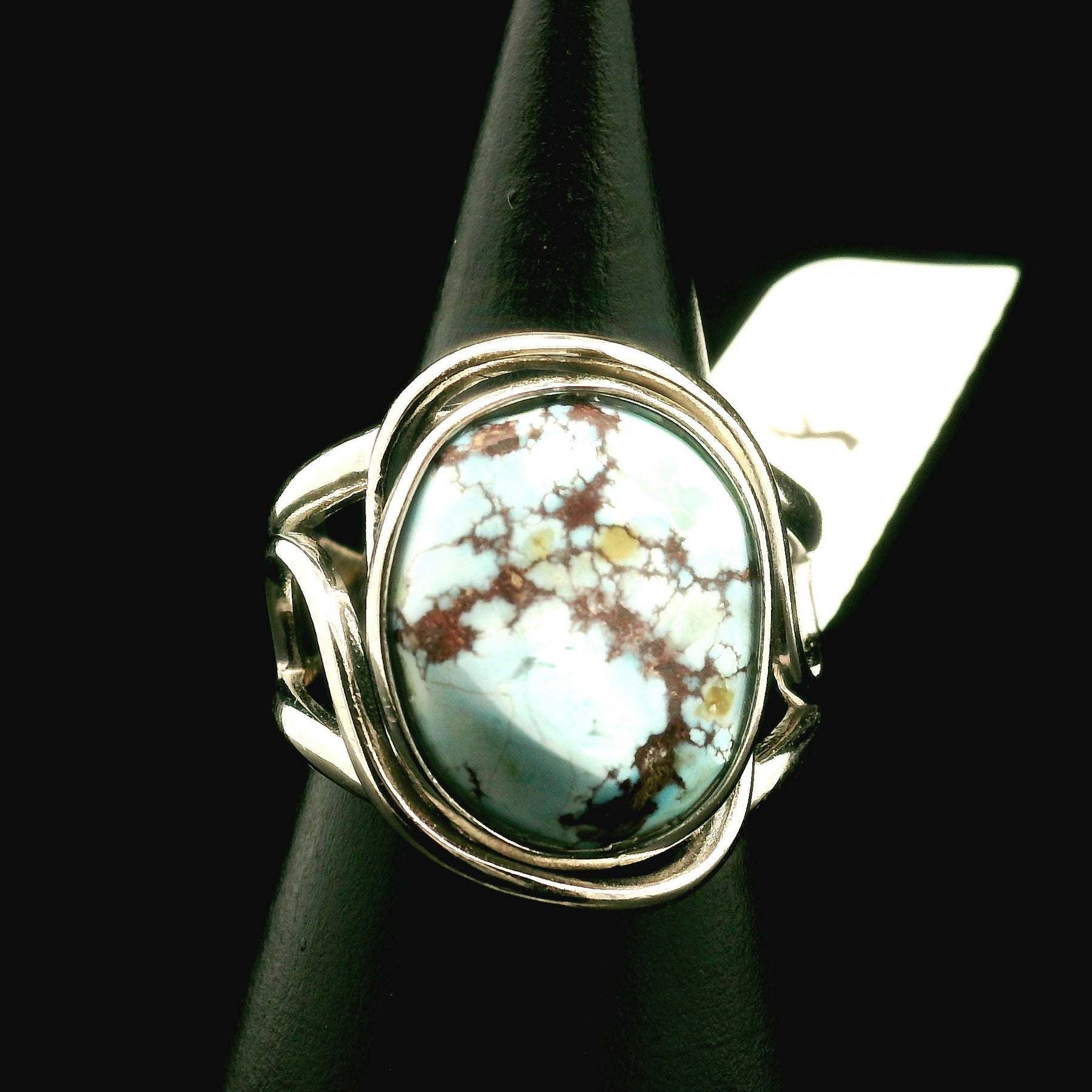 This beautiful, high quality, natural untreated Golden Hills Turquoise was hand picked with intention just for you by Rick and Jamie and set in our best selling, rhodium plated, .925 Sterling Silver adjustable setting. This will be a beautiful heirloom in your collection to enjoy for generations!