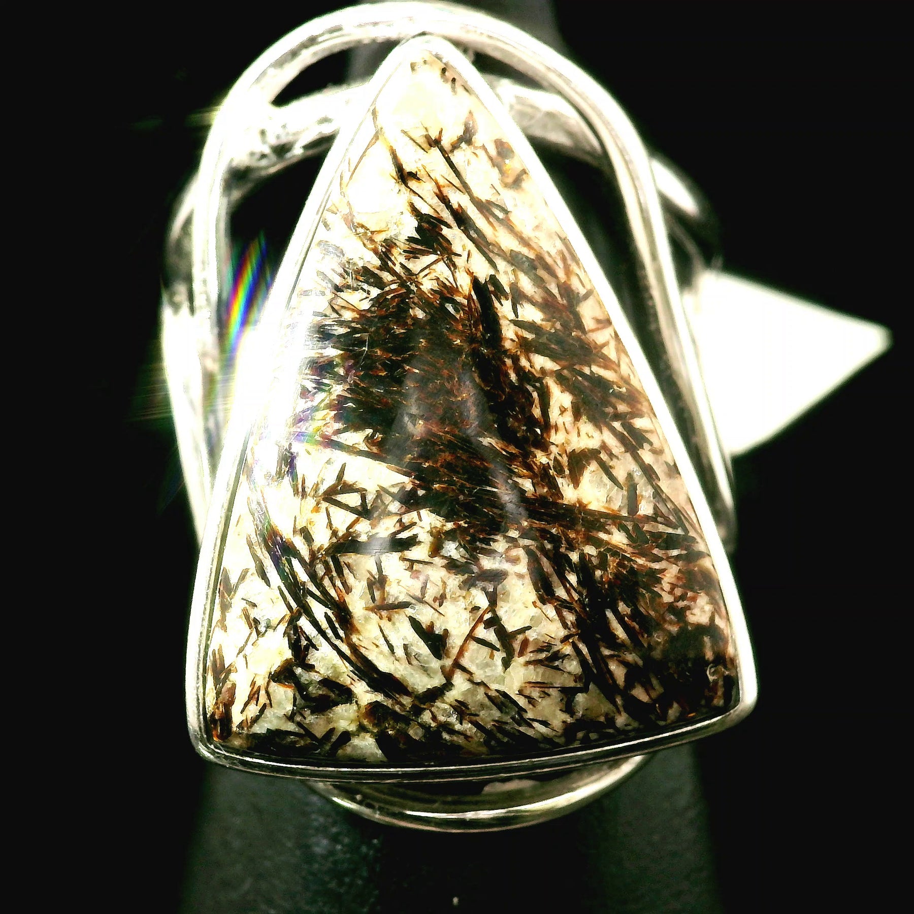 Stunning high quality Astrophyllite has been hand selected by Rick and Jamie! Set in a tasteful rhodium plated, .925 sterling silver setting, this will be a beautiful heirloom in your collection to enjoy for generations!