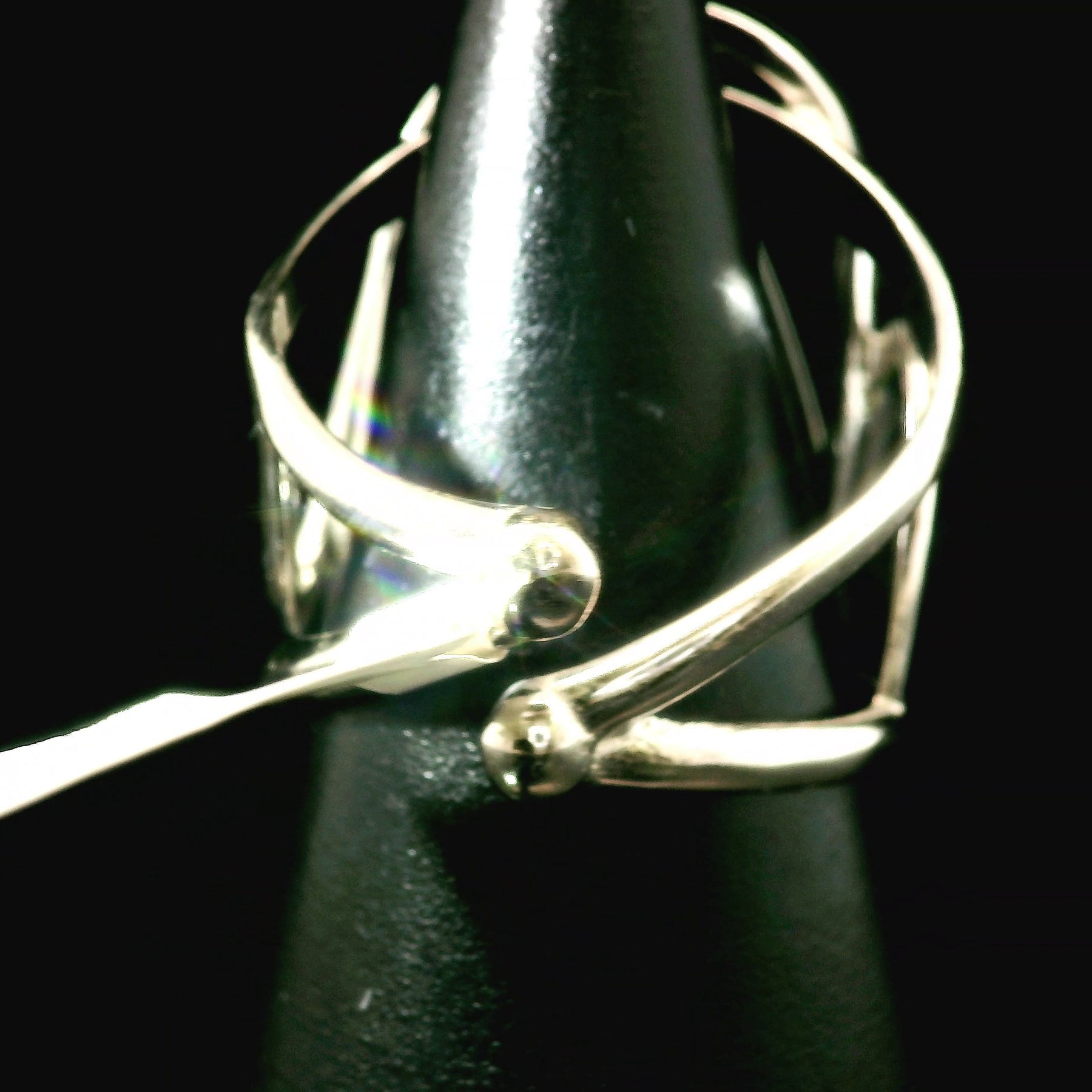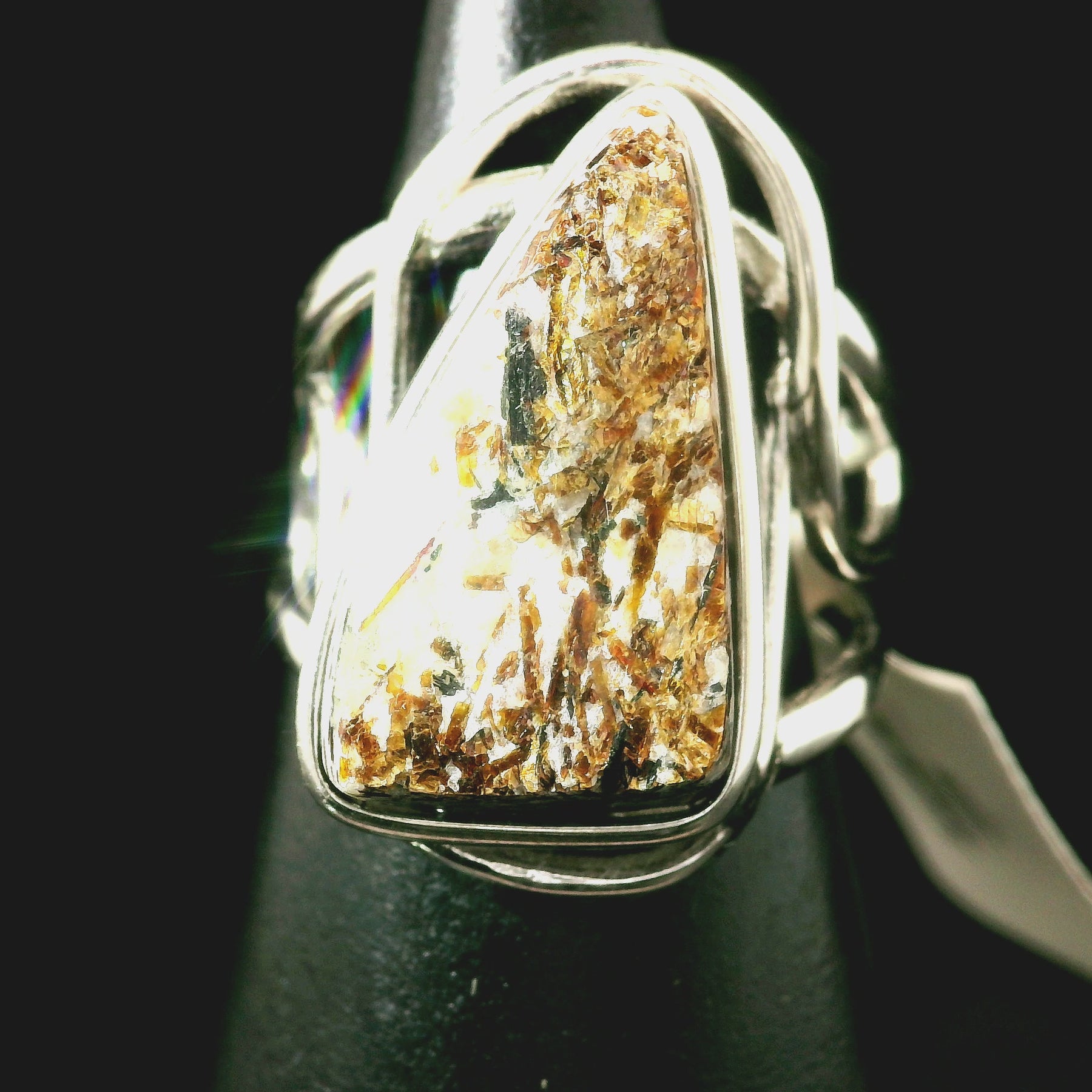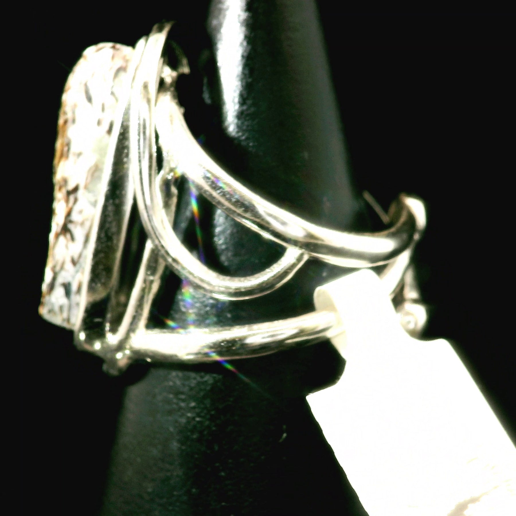 Absolutely gorgeous and high quality, Astrophyllite Cuff Ring in Rhodium Plated, .925 Sterling Silver. Adjustable ring fits sizes 4-11.