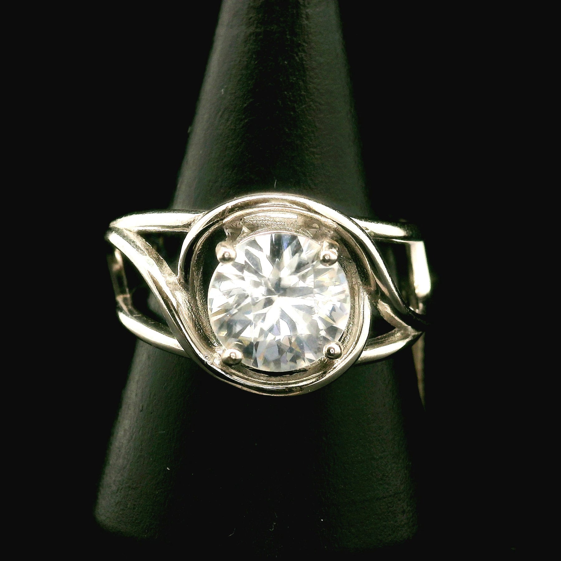 Stunning, high quality gemmy Zircon Cuff Ring in rhodium plated, .925 Sterling Silver. Adjustable ring fits sizes 4-11.