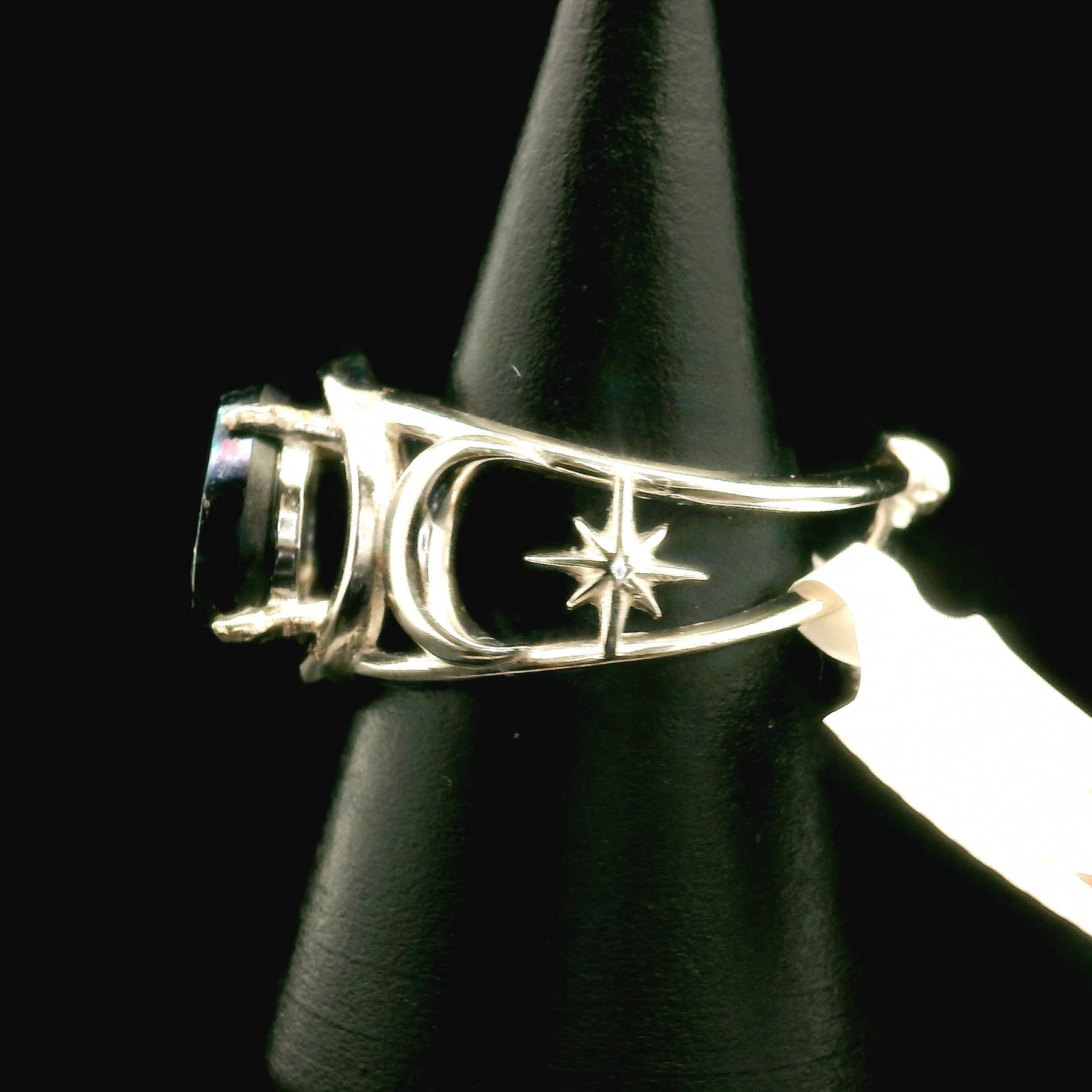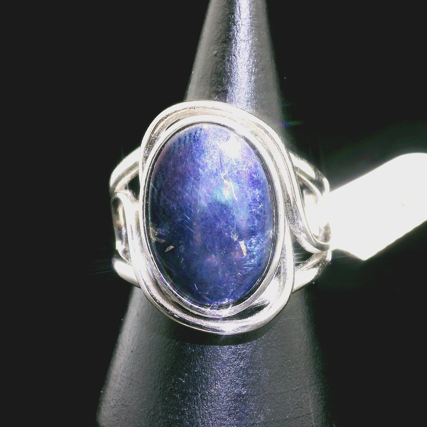 An absolutely enchanting, one of a kind, Covellite in sterling silver. Adjustable sizes 4-11.