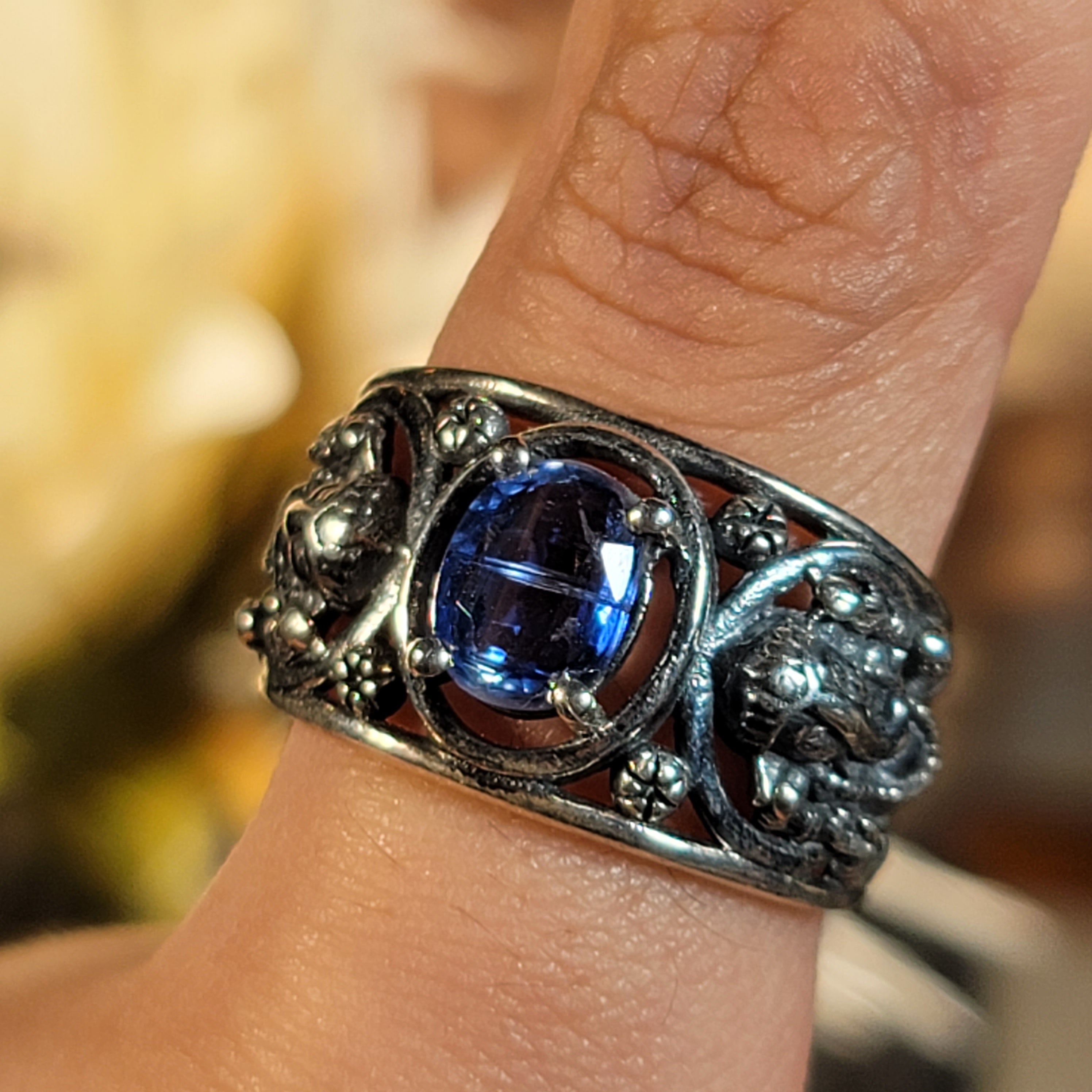 Absolutely enchanting Kyanite Ganesha Cuff Ring in .925 Sterling Silver. Adjustable ring fits sizes 4-11.